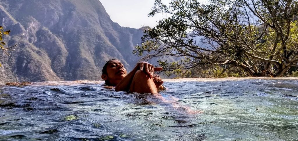 Total, no había nada que perder y sí, mucho por ganar. Decidí empezar por comprarme una tina de plástico, en dónde pudiera poner los 100 litros de agua caliente con 2 kilos de sal de mar. Quería experimentar con mi cuerpo que reacciones tenía. Después de salir de mi quimioterapia, llegue a casa me metí a la tina previamente preparada (2 kilos de sal en 100 litros de agua caliente), me sentía cansada, por la quimioterapia y por lo caliente del agua me sentí débil. Después de unos minutos mi cuerpo desprendía olor químico. Eso me desconcertó, al otro día ya no percibí el olor. Hasta la fecha lo sigo haciendo por lo menos 2 veces al mes. Yo le tengo fé a los baños de sal y al agua termal. Antes de la pandemia iba a las grutas de Tolantongo es un parque acuático, ubicado en el estado de Hidalgo. Su paisaje es montañoso, bañado de cascadas, ríos de color turquesa y grutas donde brotan aguas termales, cuenta con 3 hoteles o puedes rentar casas de campaña, este balneario se encuentra a 3 horas y media de la Ciudad de México. Es hermoso!!! Debido a las propiedades que tienen sus aguas termales, iba seguido (antes de la pandemia). Pienso retomarlo, me ayuda mucho a desintoxicar y relajar mi cuerpo.